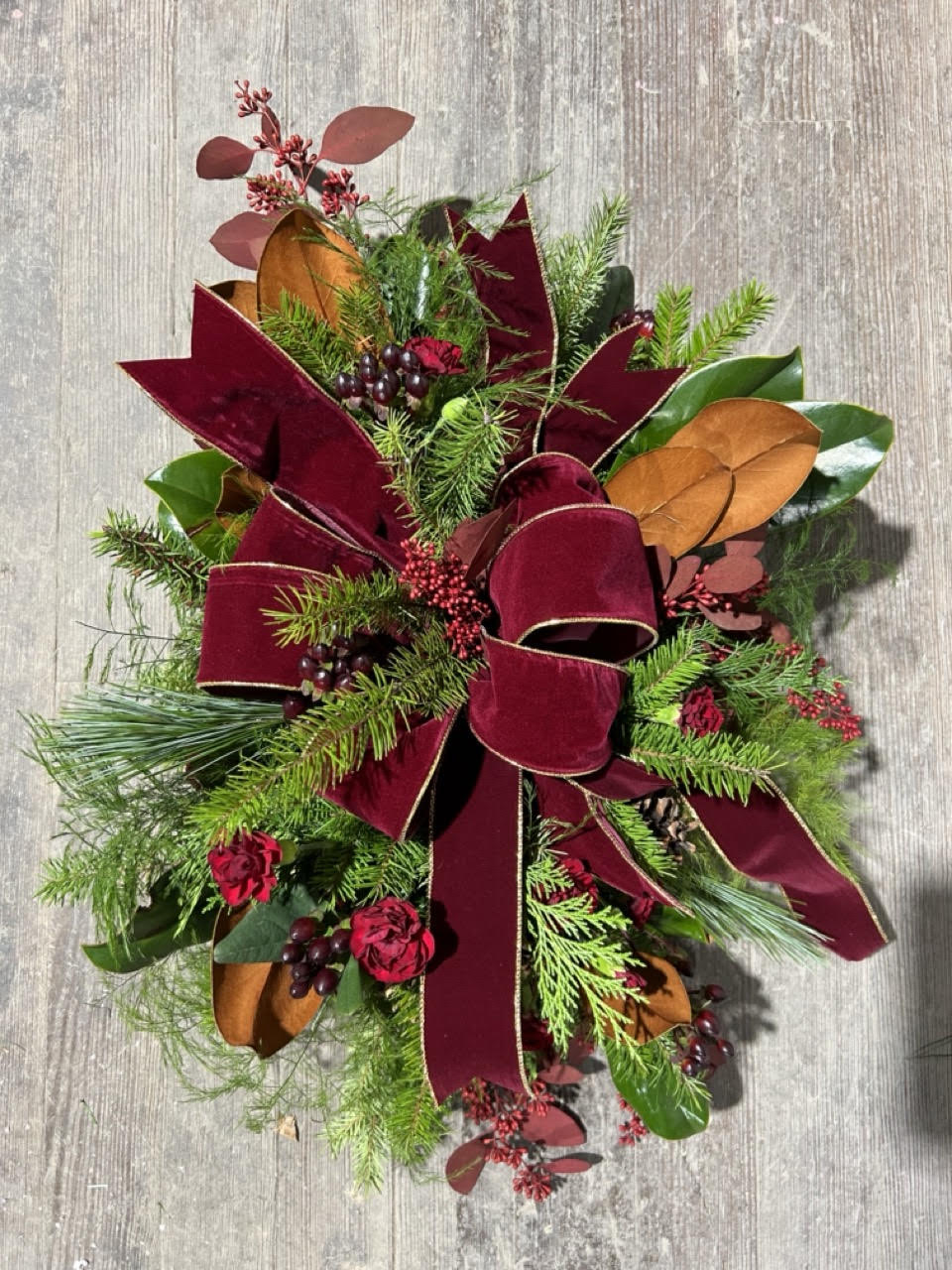 Premium and Luxe designs will each be larger in size and each have more accent elements such as red roses, magnolia leaves, red-tined eucalyptus, etc. – built to value.